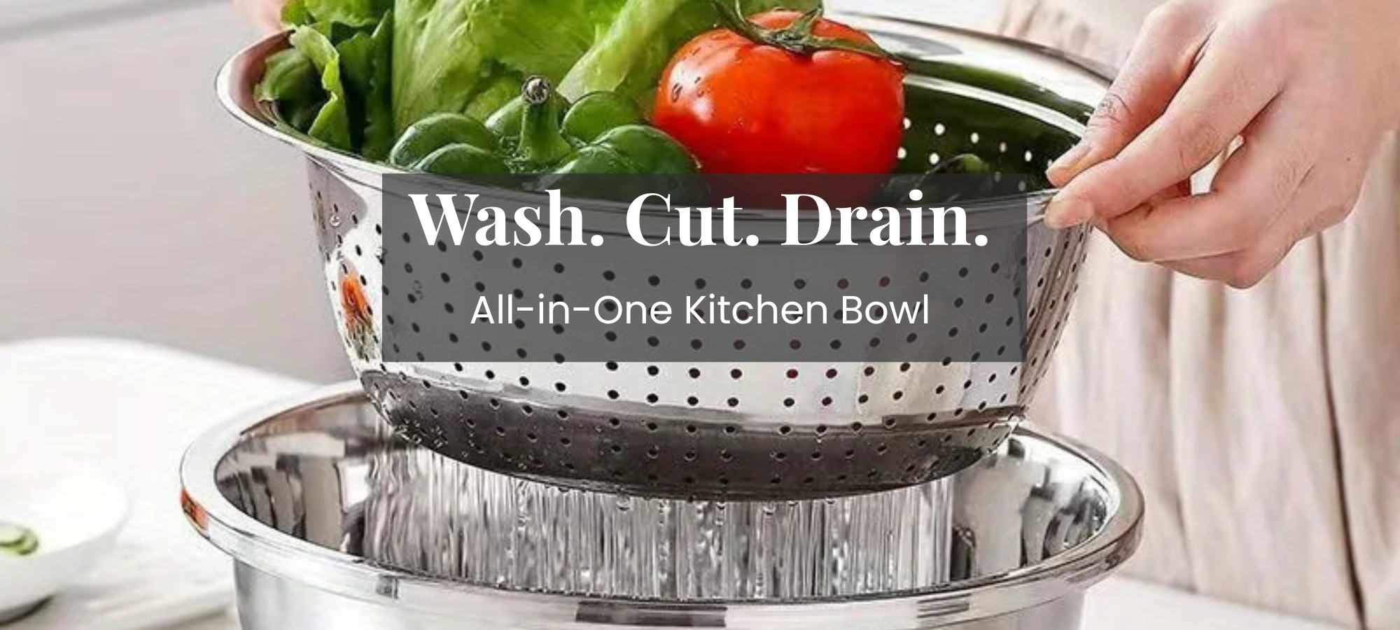The Razvel Kitchen Bowl combines washing, cutting, and draining in one smart design.Save time, reduce mess, and prepare your vegetables faster with a durable stainless-steel system made for everyday cooking. -